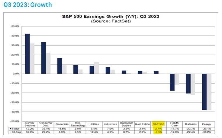 The blended earnings growth for the 3rd quarter is +2.7% as of today, which is the first quarter of YoY earnings growth since the 3rd quarter of 2022.