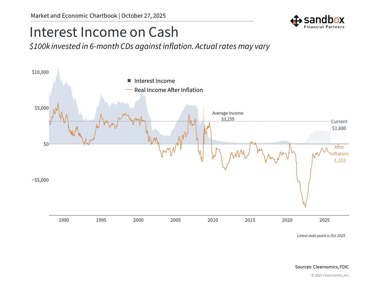 The second cost is reinvestment risk. Cash yields change quickly. As the Fed cuts rates, today’s attractive yields may fade, forcing investors to reinvest at lower levels – often below the level of inflation. Meanwhile, those who remain in short-term instruments may miss gains from longer-term bonds or stocks, which tend to benefit when rates fall.