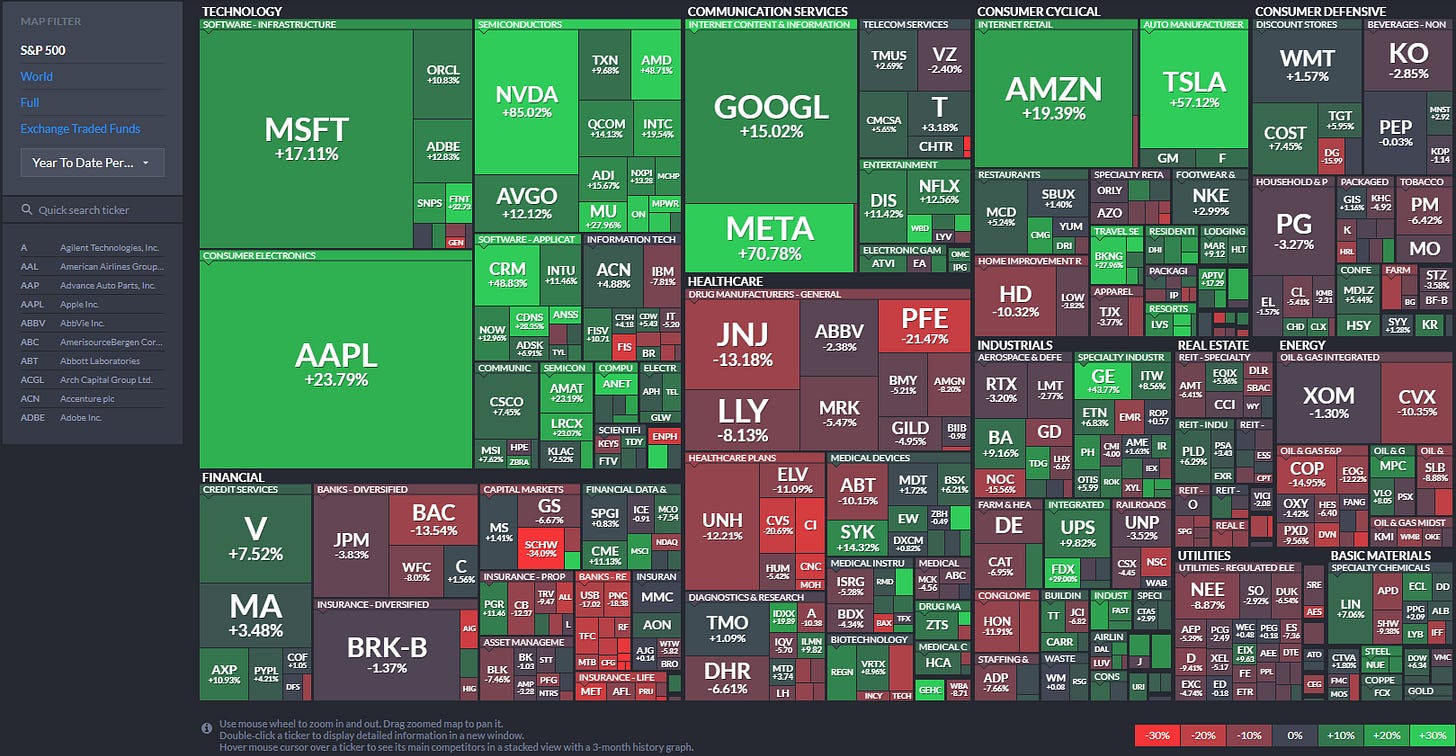It’s clear that just a handful of mega-cap tech stocks (MSFT, AAPL, NVDA, GOOGL, META, AMZN, TSLA) are doing the heavy lifting within the S&P 500.