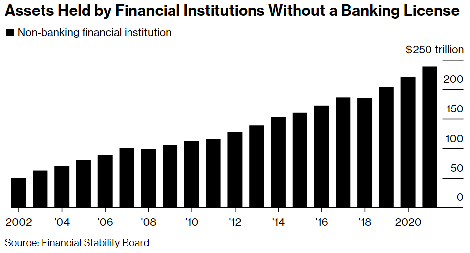 More than a dozen regulators, bankers, asset managers, and former central bank officials interviewed by Bloomberg News say shadow banking debt and its links to lenders are becoming a major cause for concern as rising interest rates send tremors through financial markets.