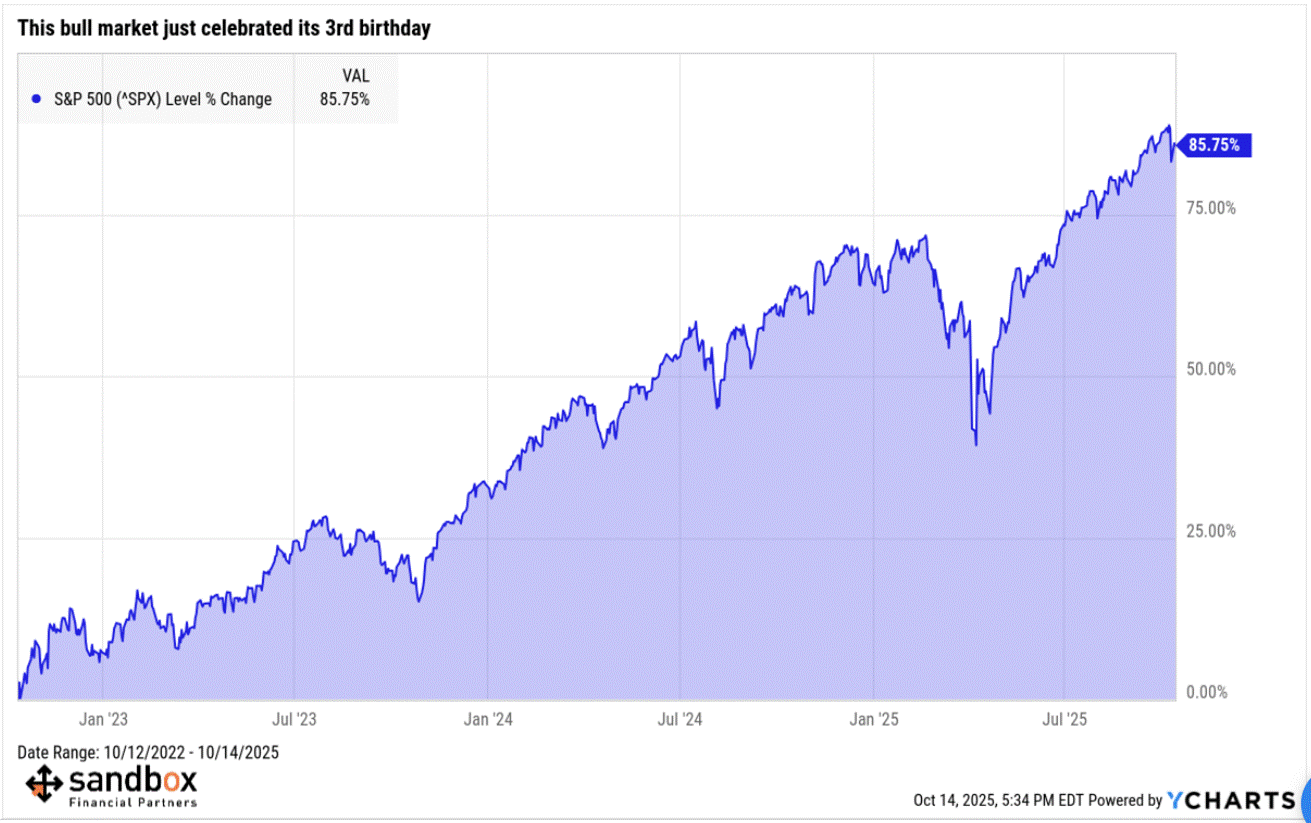 The S&P 500 Index is up 85% from its October 2022 bear market low, while earnings are higher by ~20%.