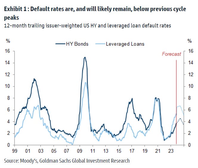 Defaults have risen but not spiked, where the worst of it should peak around mid-to-late 2024/early 2025