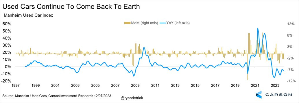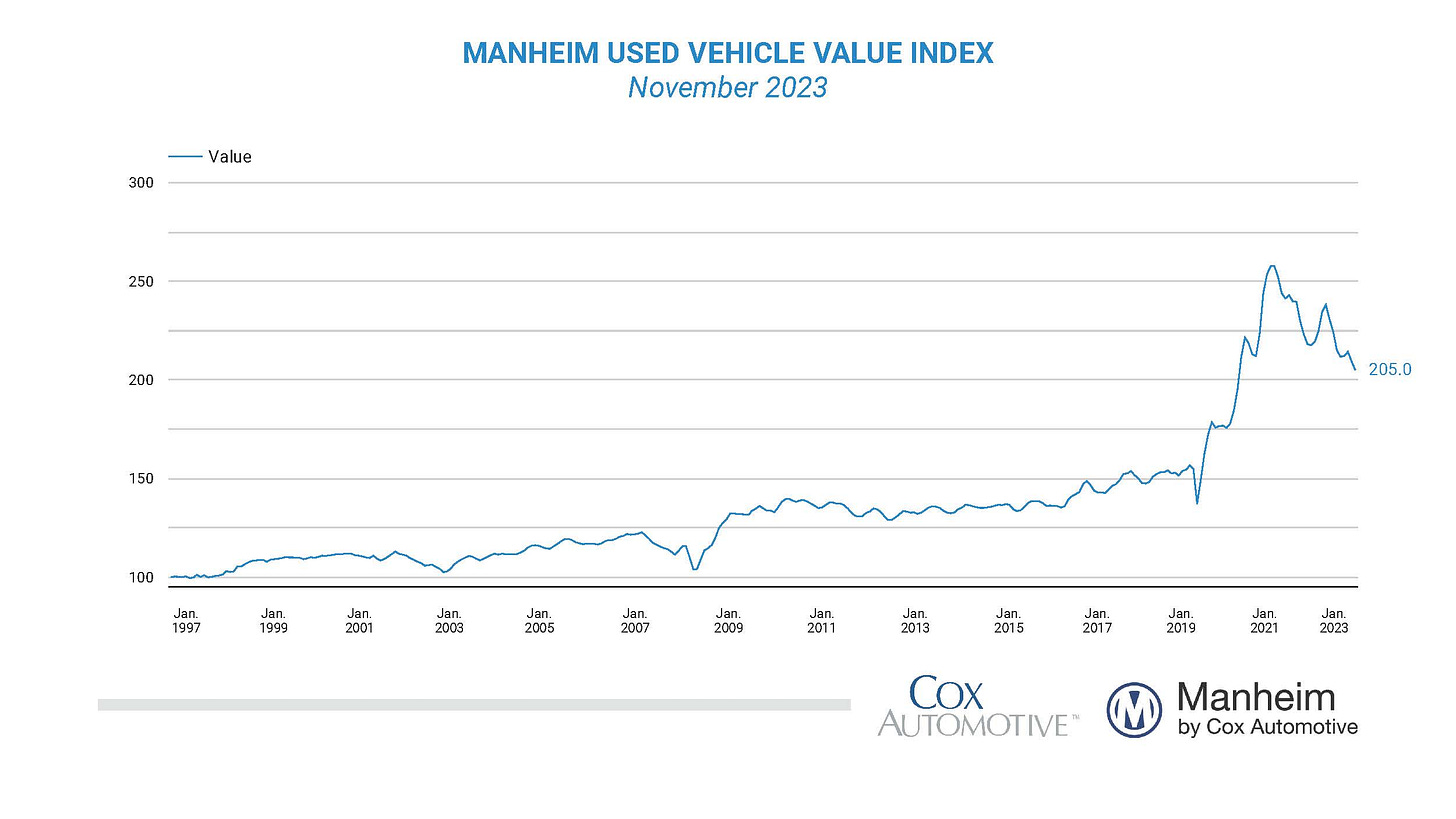 The Manheim Used Vehicle Value Index fell -2.1% MoM in November, down for the 2nd consecutive month and down 6 of the past 8 months.