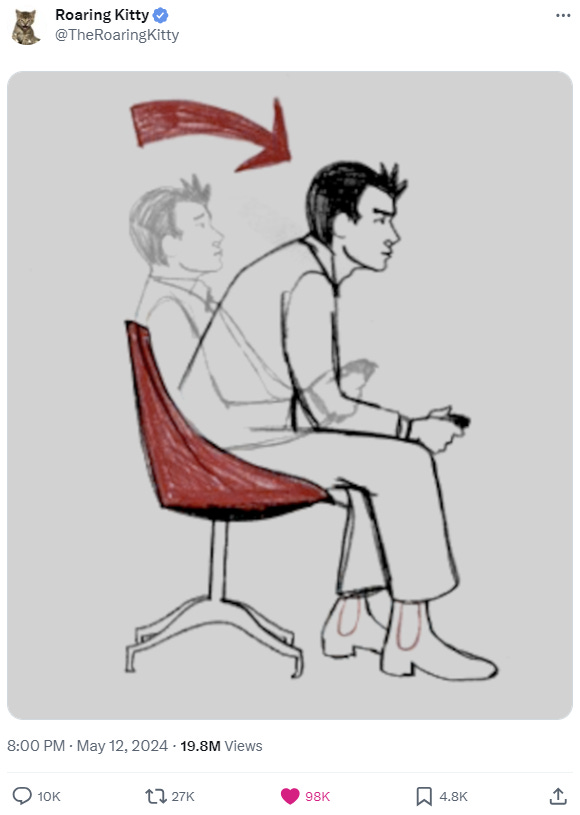Here we go again: for the first time since 2021, “Roaring Kitty” is back posting on social media. Shares of meme-stock darling GameStop ($GME) surged – and at one point doubled – while trading was halted numerous times after volatility screens were breached throughout the frenetic day. Other worthless meme stocks caught a sympathy bid as the retail trader vibes returned Monday. Where does this go next !?!