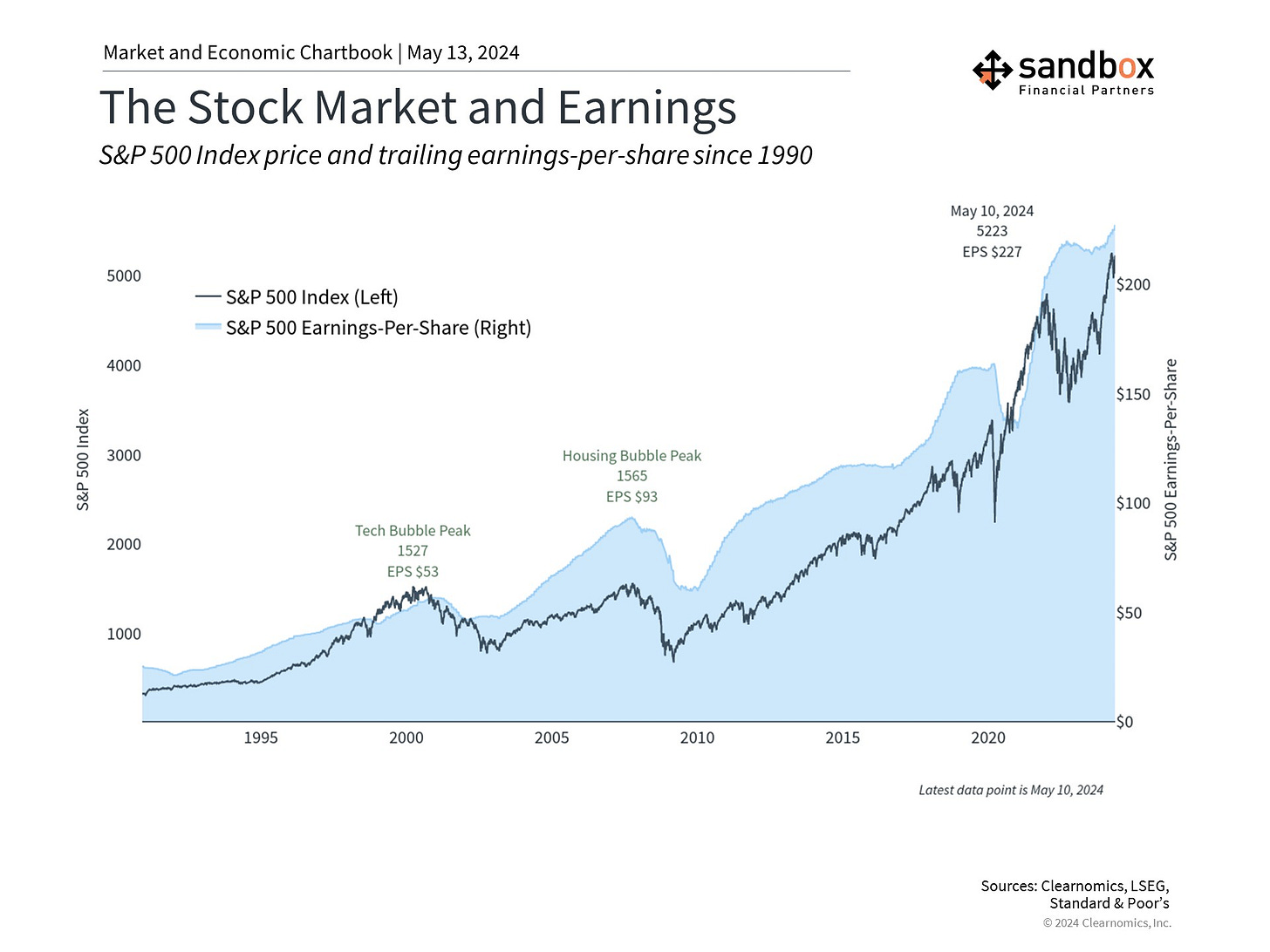 On a full-year basis, the consensus estimate for S&P 500 earnings in 2024 is now $239 per share, according to LSEG data. If this is achieved, it would represent a +10.2% increase from last year. Wall Street analysts also expect continued growth of +14.0% and +11.7% in 2025 and 2026, respectively. The hope of an earnings rebound is one reason the stock market has rallied over the past year, driving up valuations.