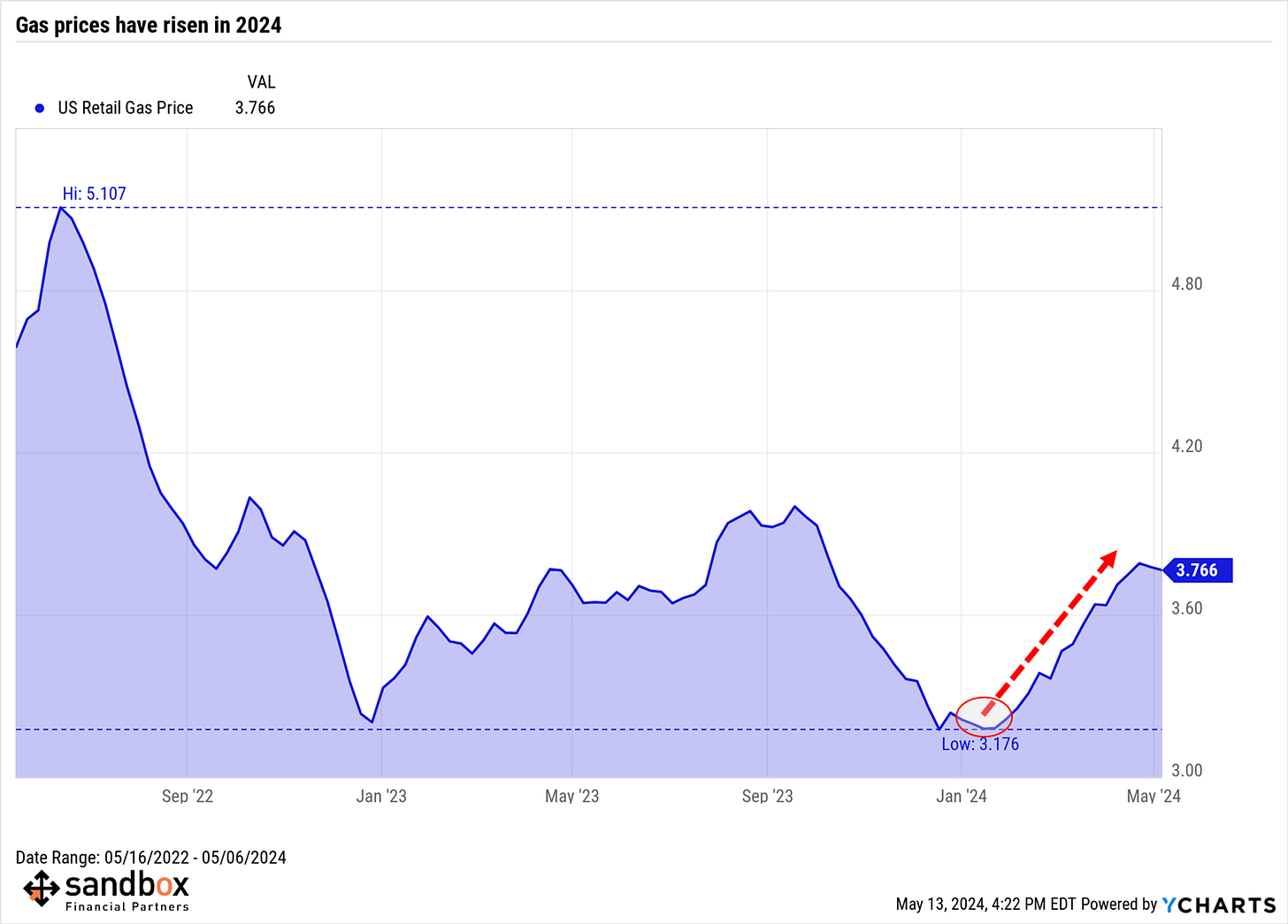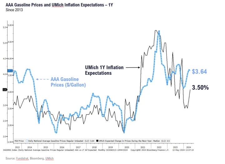 Most people drive by gas stations daily. It's impossible to miss the prices. If gas prices are trending higher, it's quite likely your perception of broader inflation is also moving higher.