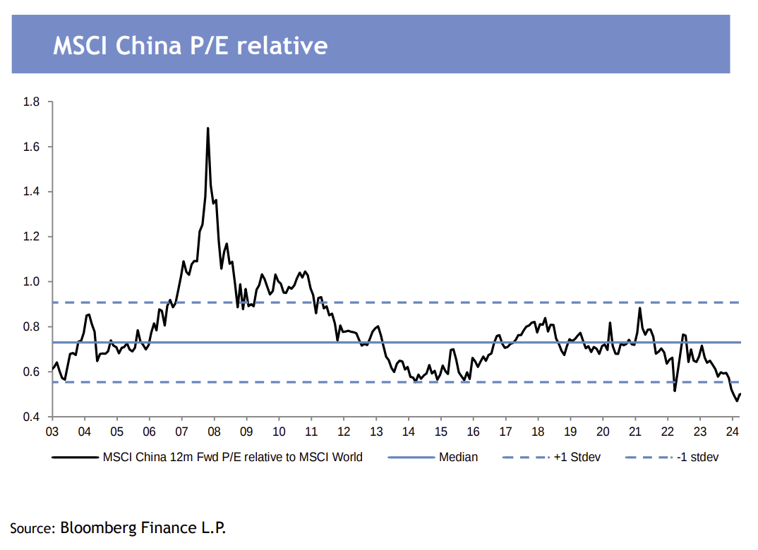 Some continue to be tactically bullish on China, despite many caveats. China is under-owned by institutional investors, sentiment towards Chinese policy is about as bearish as I can recall, and valuations have another 10-15% upside before closing the discount to historical median. Chinese equities’ rally has continued over the last few weeks on favorable and increasingly more aggressive policy actions.