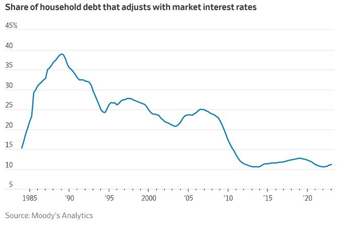 Only 11% of U.S. household debt has an adjustable interest rate.