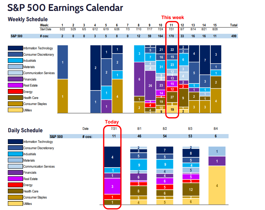 The S&P 500 will have 170 companies report earnings this week.