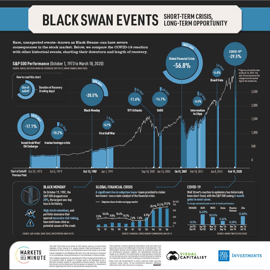 Black swans are unpredictable market events beyond what is normally expected and carry severe negative consequences for almost everyone. COVID-19 is a perfect example.