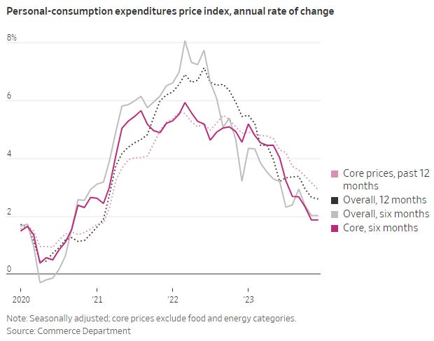 The Federal Reserve’s preferred gauge of underlying inflation cooled to its lowest level since March 2021, an almost 3-year low.