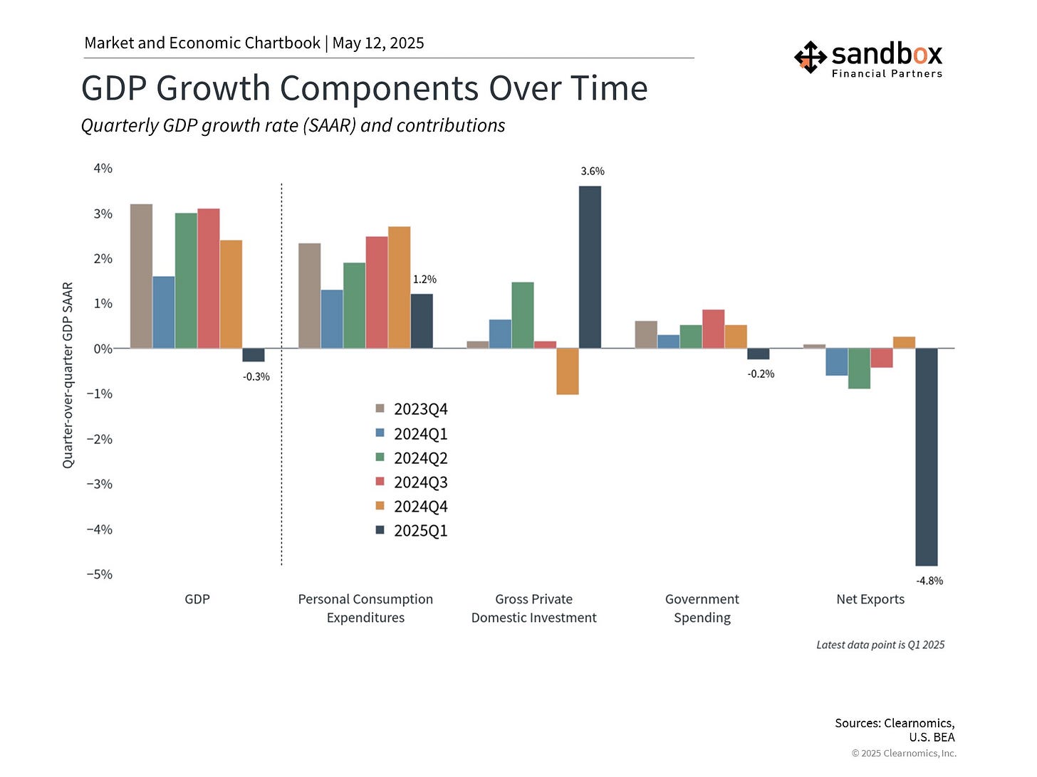 First, many economic indicators remain solid. The latest jobs report showed the economy added a net 177k jobs in April, while the unemployment rate held steady at 4.2%. The strong job market helps to offset concerns that tariffs and uncertainty will impact consumer spending.