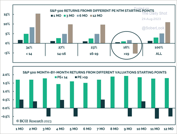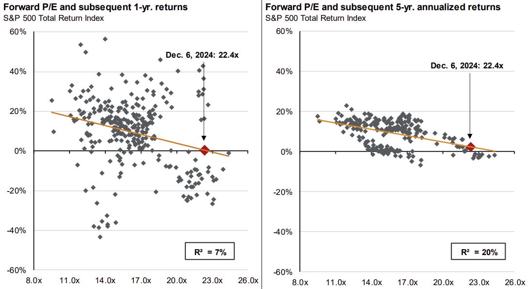 Historically, more lofty valuations – i.e. higher P/E multiples – have led to market underperformance.