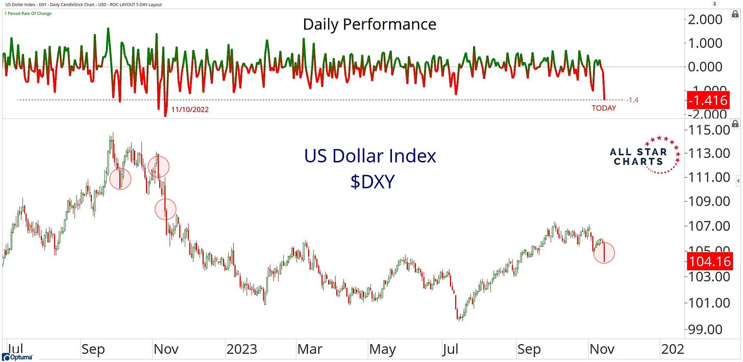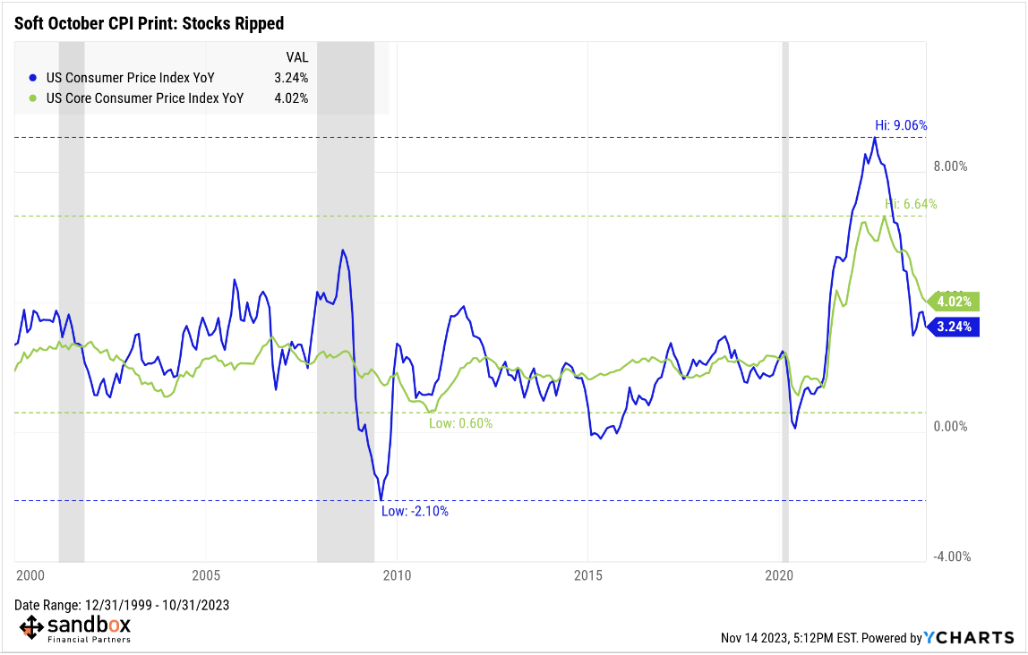 Inflation's final descent, plus peak interest rates, Apple's racket, Dollar falls/stocks surge, and Q4 estimates