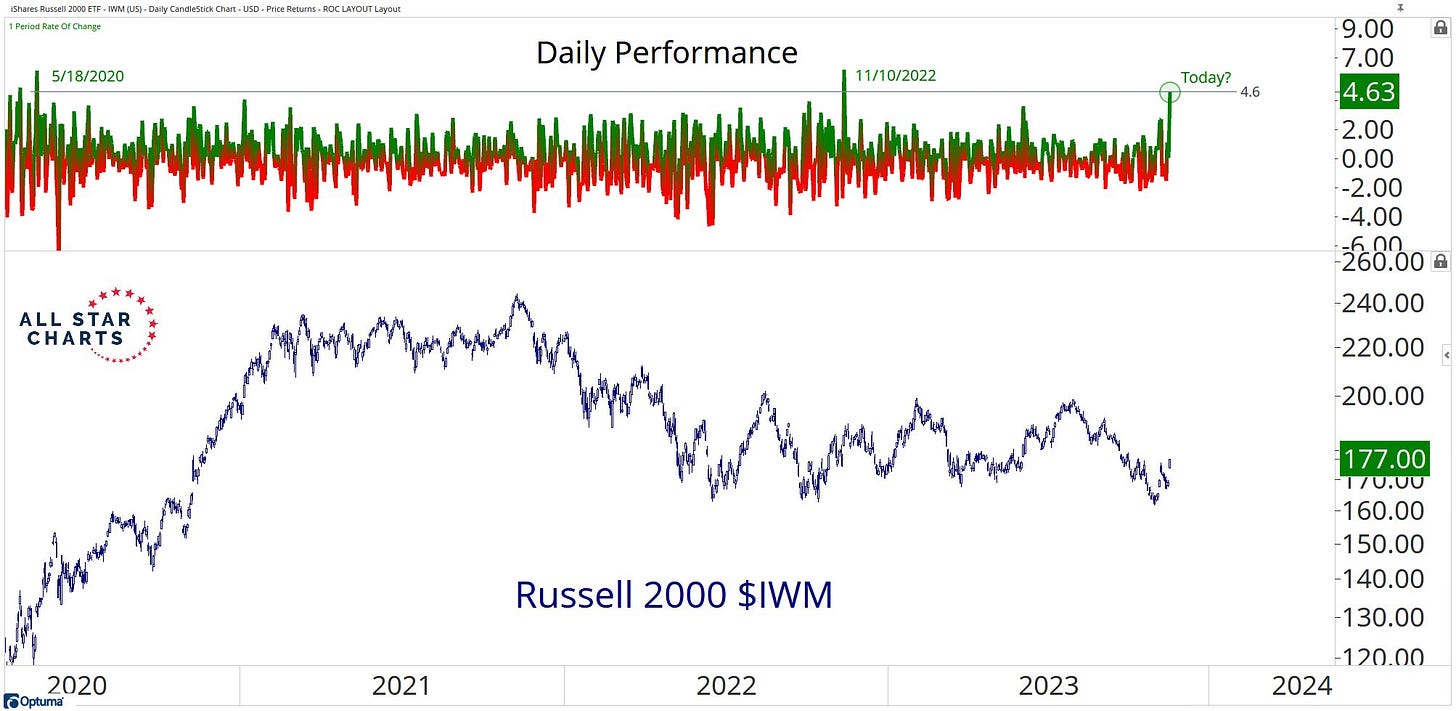 *Note: this IWM 0.00%↑ chart was an intra-day chart only showing a +4.63% move