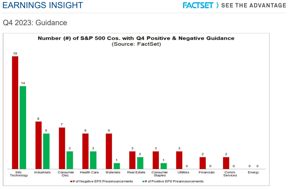 These downward EPS revisions from analysts align with the Q4 earnings guidance from C-Suite America where more companies have issued negative EPS guidance (59) than positive (30).