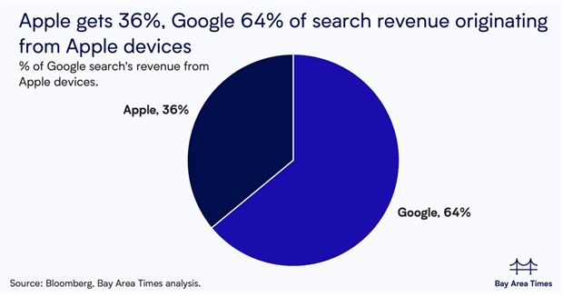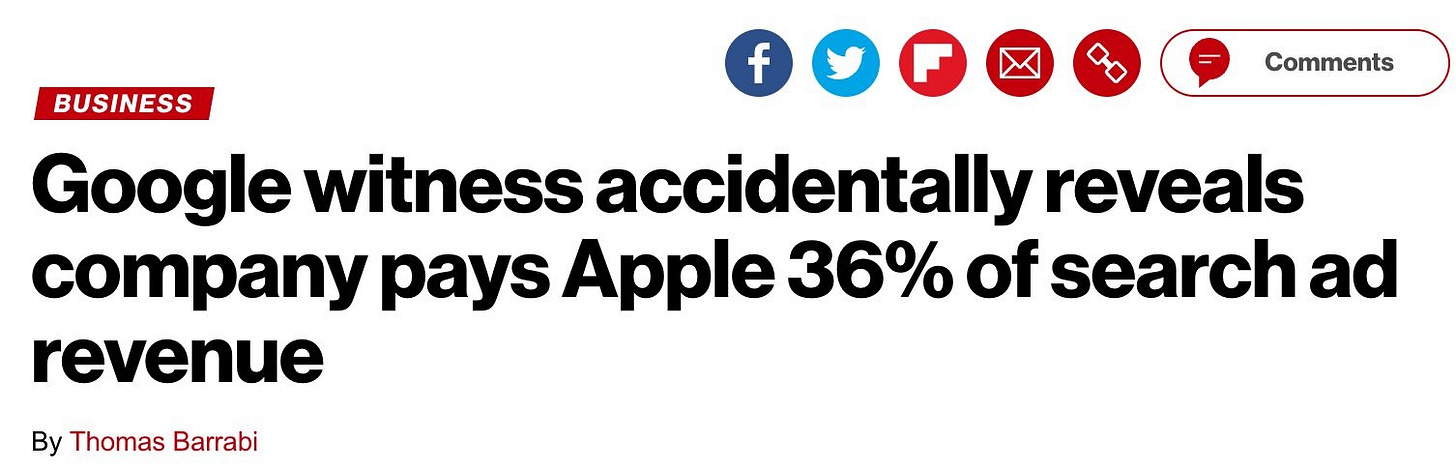 Google pays Apple 36% (!!!!!!!!) of the revenue it earns from search advertising made through the Safari browser, per testimony from a University of Chicago professor.
