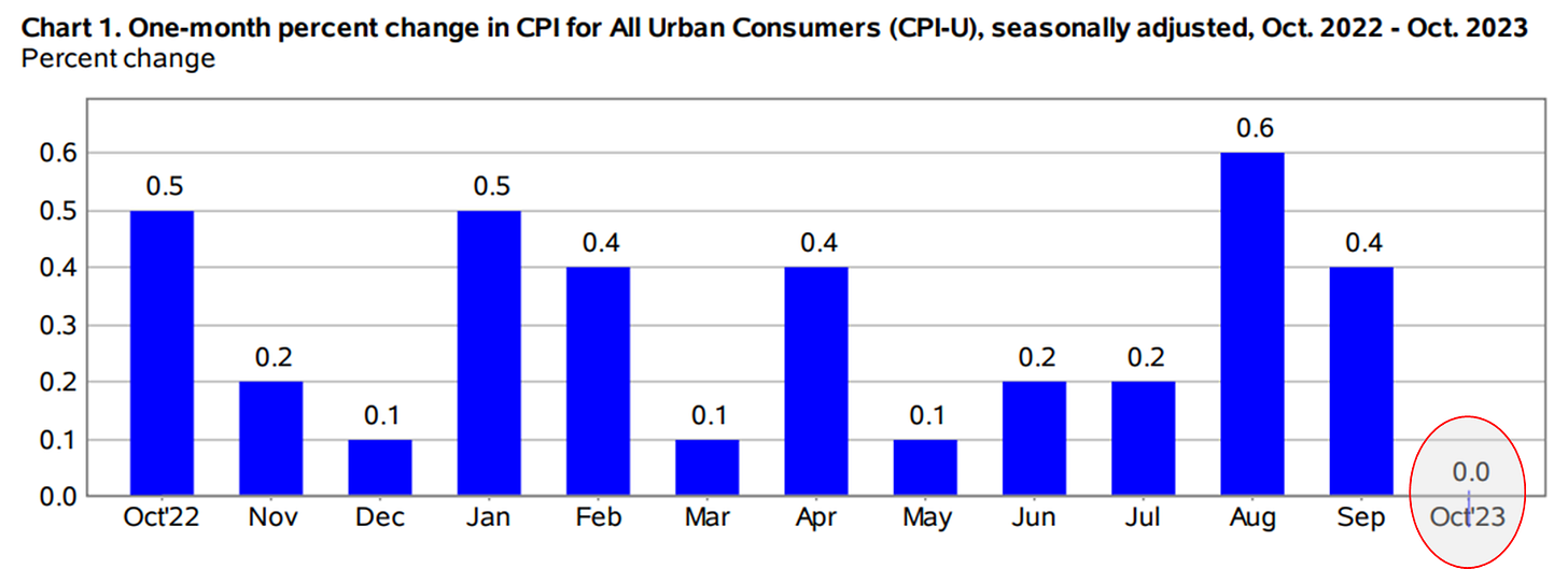 The monthly change in headline CPI was flat, the lowest month-over-month change since July 2022.