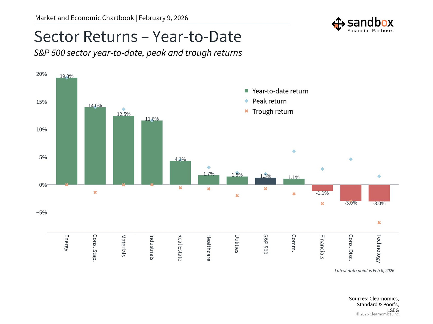 Perhaps the biggest question is around stock market valuations. With the S&P 500’s price-to-earnings ratio near historically elevated levels, investors have been rotating into other sectors such as Consumer Staples, Energy, Materials, and Industrials. This possibly reflects markets becoming more selective and focusing on opportunities beyond AI.