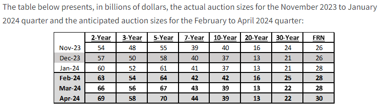 In the press release, the U.S. Treasury said it will offer $121B in Treasury securities in next week’s auctions, up from $112B in the prior quarter. The refunding will include: