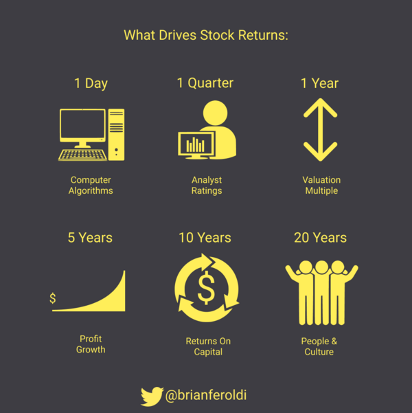 With all the noise and competing narratives publicly available to us, it is often difficult to maintain discipline and perspective without getting too emotional about our investments. After all, we are human beings with real feelings and emotions. Sometimes we need to take a step back and remember what drives stock returns over different time horizons.