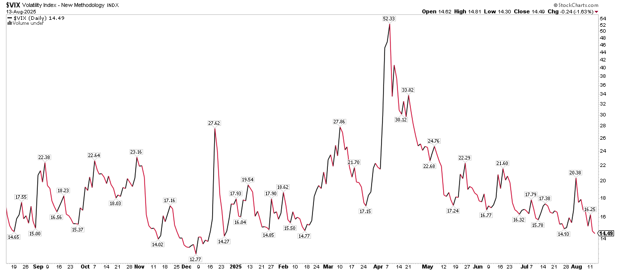 The stampede of bulls raging off the April lows have flattened the VIX to its lowest level of the year, closing today at 14.49.