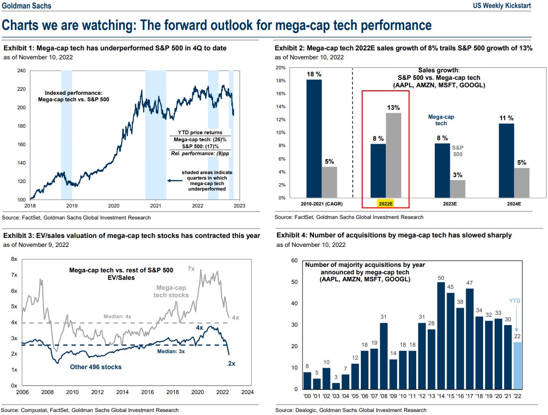 The 4th quarter is on track to be just the 11th quarter in the past ten years in which the four mega-cap tech stocks (AAPL, GOOGL, AMZN, and MSFT) have collectively underperformed the S&P 500. After all, stock performance during 2022 has been almost entirely a function of interest rate and valuation moves but has shifted to corporate fundamentals.