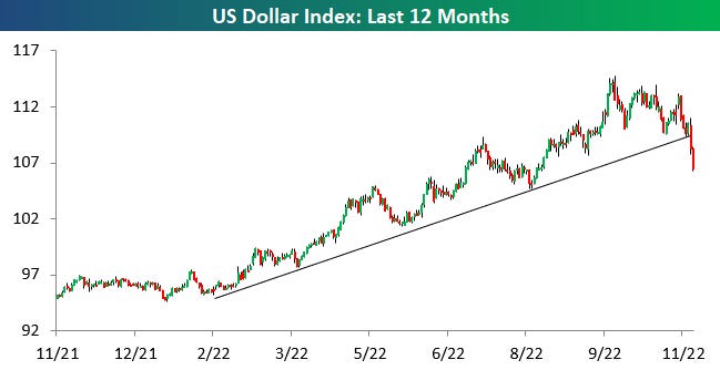 The rally in equities this week came alongside a huge move lower in the U.S. Dollar.
