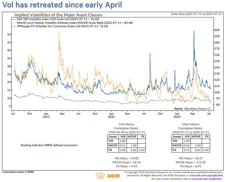 The MOVE index, an index of Treasury market volatility, has tumbled ~55 points from April 8 peak to the low-end of its multi-year range.