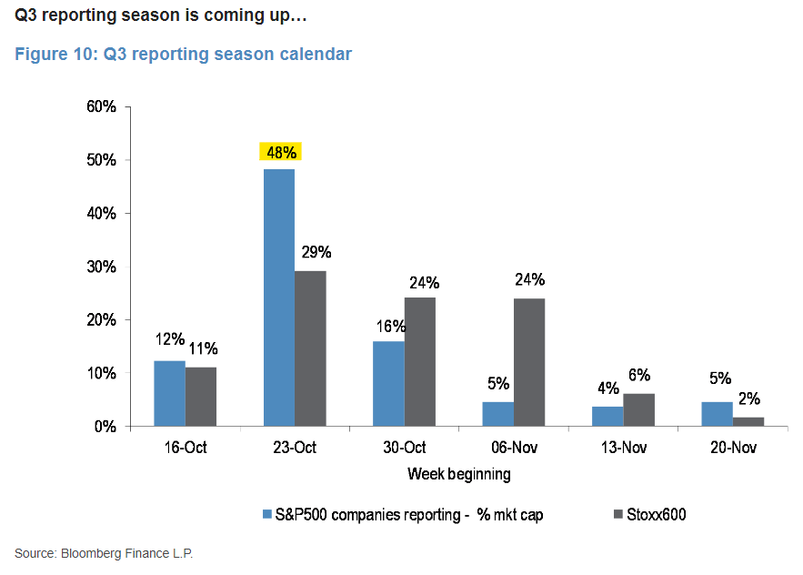 We are entering the busy period of the Q3 reporting season, with nearly half of S&P 500 companies by market capitalization set to report this week.