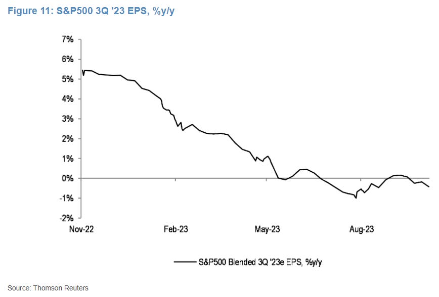 The hurdle rate for corporate America appears rather low, as Q3 EPS estimates have been revised sharply lower, especially in the 1st half of the year – coming down from just over 5% YoY growth to an outright, albeit small, YoY decline.