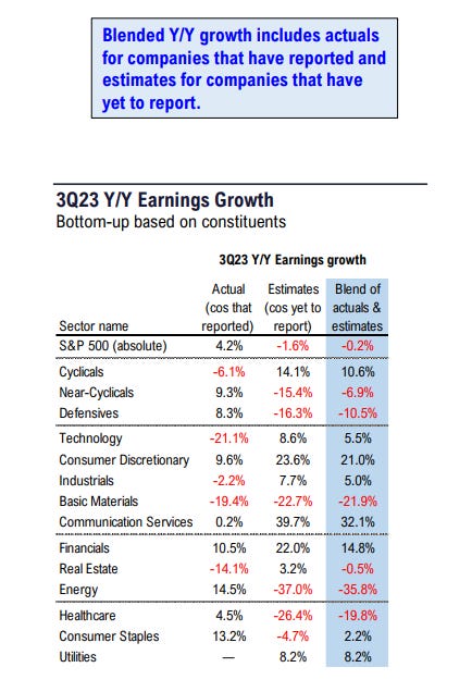 Not exactly the earnings valley that the market expected/priced into markets in 2022, but an earnings recession nonetheless.