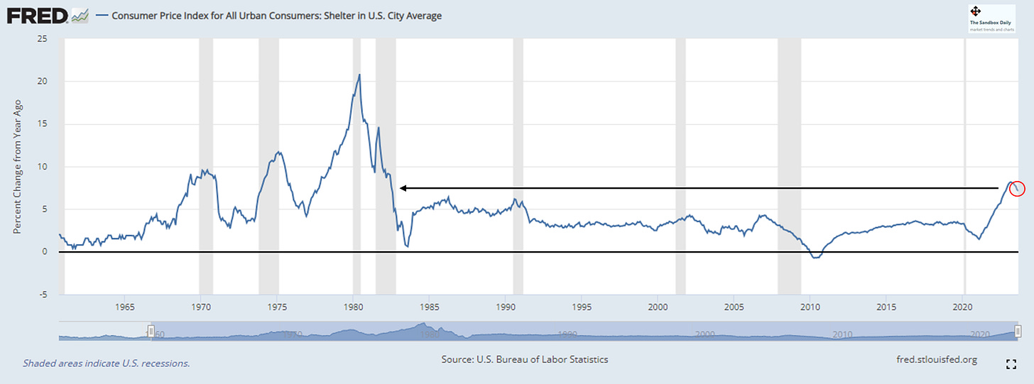 Currently, shelter inflation growth is up +7.2% YoY, which is down a small amount from the cycle peak of +8.2% back in March 2023 but still at the highest level since June 1982.