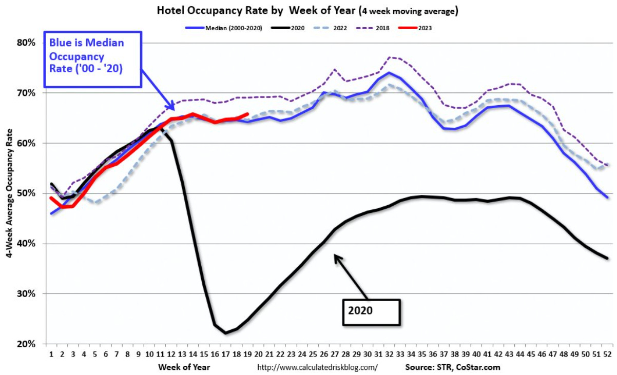 The hotel industry continues to outperform its historical averages, as recent hotel performance shows 65.1% occupancy – slightly better than the median occupancy rates from 2000-2020.