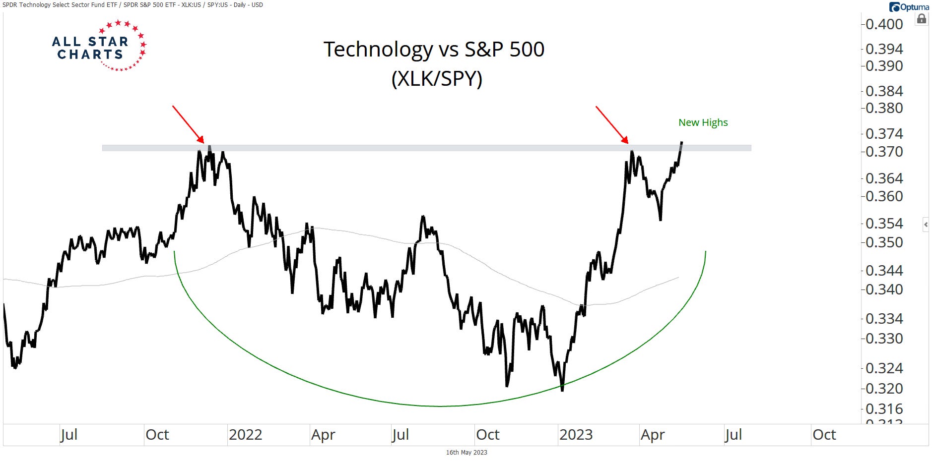 Technology has been a clear area of leadership over the past six months. Not only are tech stocks pushing against new highs in absolute terms, but the relative trends are reaching new heights as well.