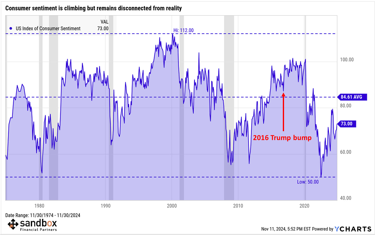 Post-election rallies, plus consumer sentiment and room to run higher?