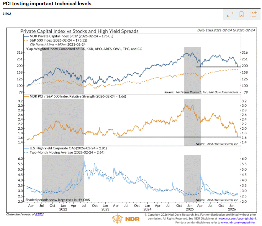 These same concerns continue to show up in the prices of Business Development Companies (BDCs), as a representative ETF made another new low last week.
