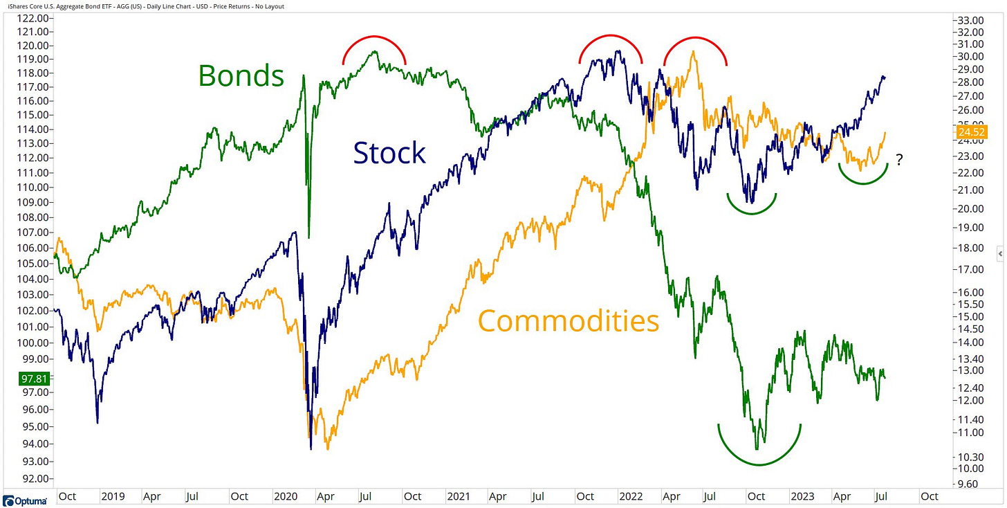As Grant Hawkins points out below, bonds rolled over first in 2020, then stocks followed suit in 2021, and finally commodities got hit in 2022.