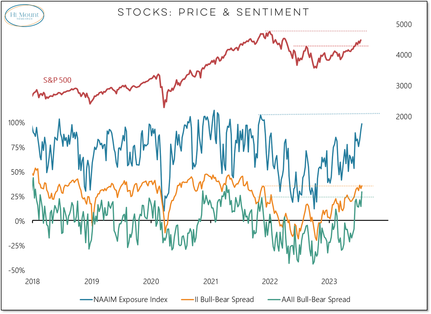 The level of confidence, as well as the YoY momentum, remain consistent with continued economic expansion. We are witnessing consumer confidence expand across the board. In fact, here’s Willie Delwiche of Hi Mount Research: “sentiment has moved quickly from widespread pessimism to excessive optimism.”