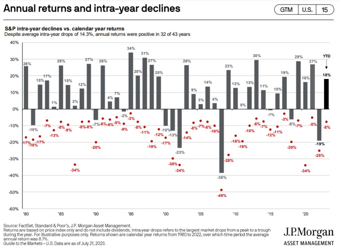 Yet, despite those intra-year market corrections, the S&P 500 was positive 32 of 43 years, or ~75% of those up years.