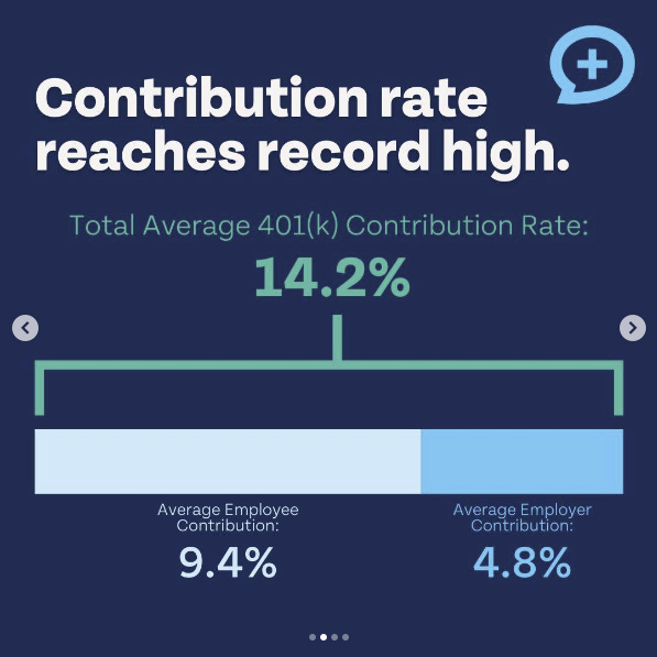 The savings rate for the average 401(k) plan, including employee and company contributions, is at record highs.