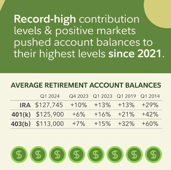 A separate report from Fidelity found on its platform the savings rate was a record high 14.2% in the 1st quarter of 2024, based on almost 26,000 corporate plans and nearly 24 million participants.