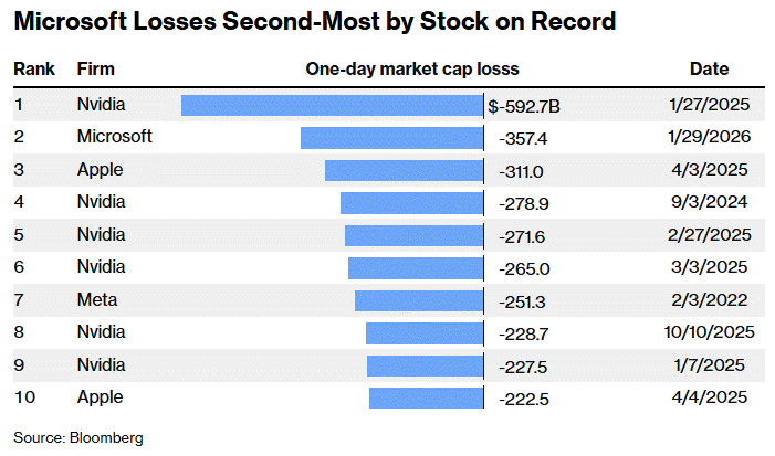 Investors took the name behind the woodshed and sold shares down -9.99% today – erasing $357 billion in market cap, its worst plunge since DeepSeek hit Nvidia in early 2025.