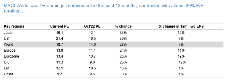 The bulk of the equity performance so far this year, and the past 18 months, has been driven by multiple expansion.
