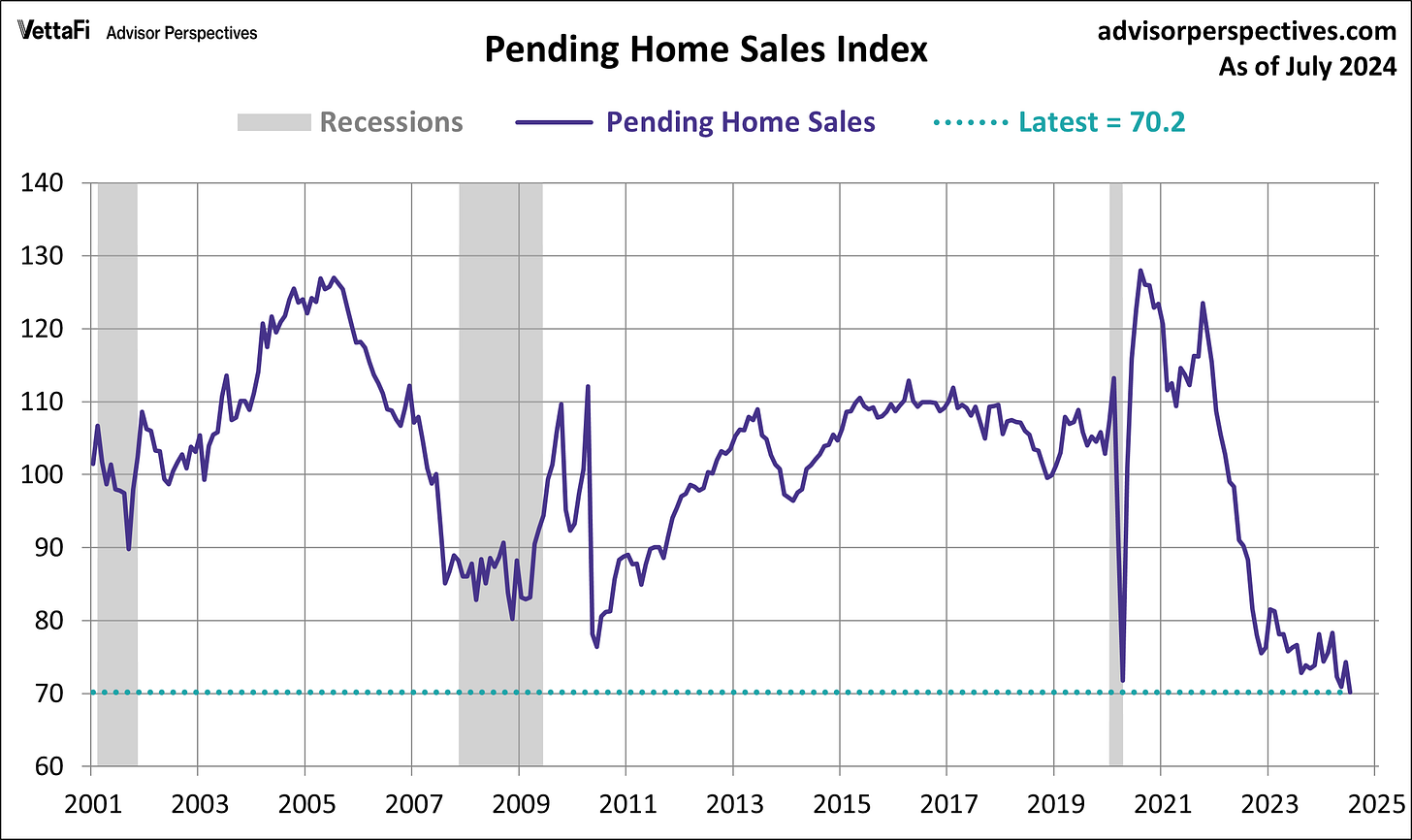 The Pending Home Sales index from the National Association of Realtors (NAR) dates back to 2001, with the latest tick from July marking the low of the series.