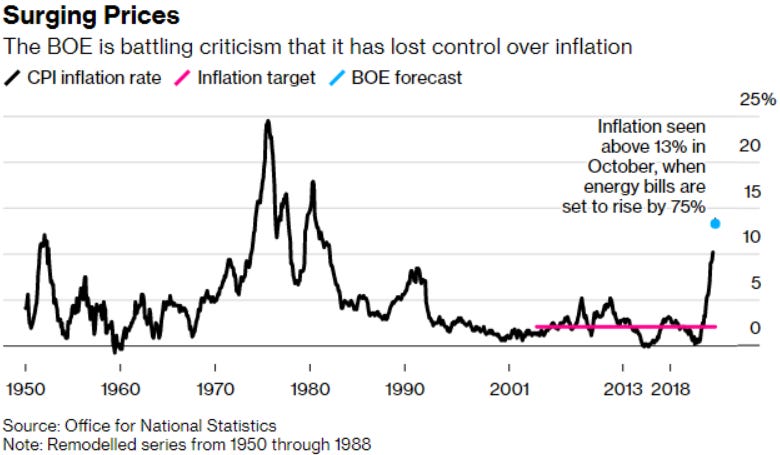 U.K. inflation hits double digits for the first time in 40 years