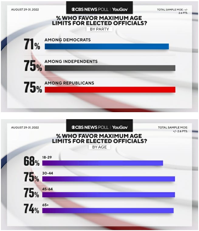 With midterm elections just around the corner (November 8) and POTUS’s 80th birthday not far behind (November 20), discourse around America's aging congresspeople is getting louder – with a CBS poll showing remarkable bipartisan support and unison across age brackets to enact age limits of elected officials.