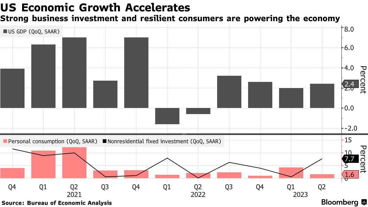 The re-acceleration of growth is a testament to the underlying strength and resilience of the U.S. economy since it comes on the heels of more than a year of Fed tightening which brought the Fed Funds Rate to its highest level since 2001.