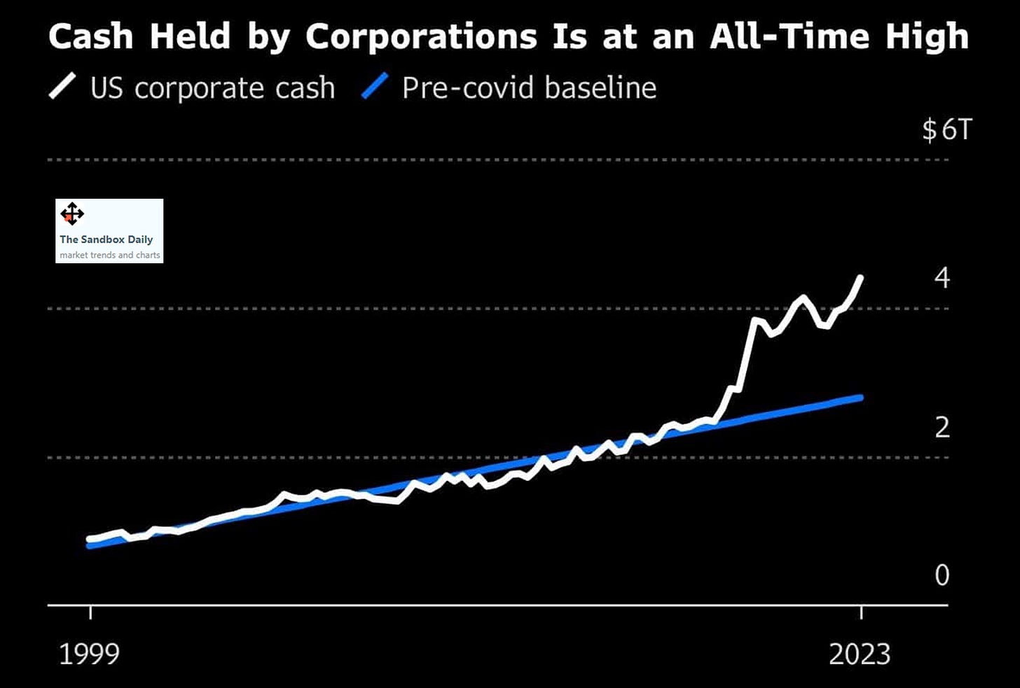 In fact, the amount of cash that companies hold on their balance sheets is at an all-time high and double the pre-pandemic trend.