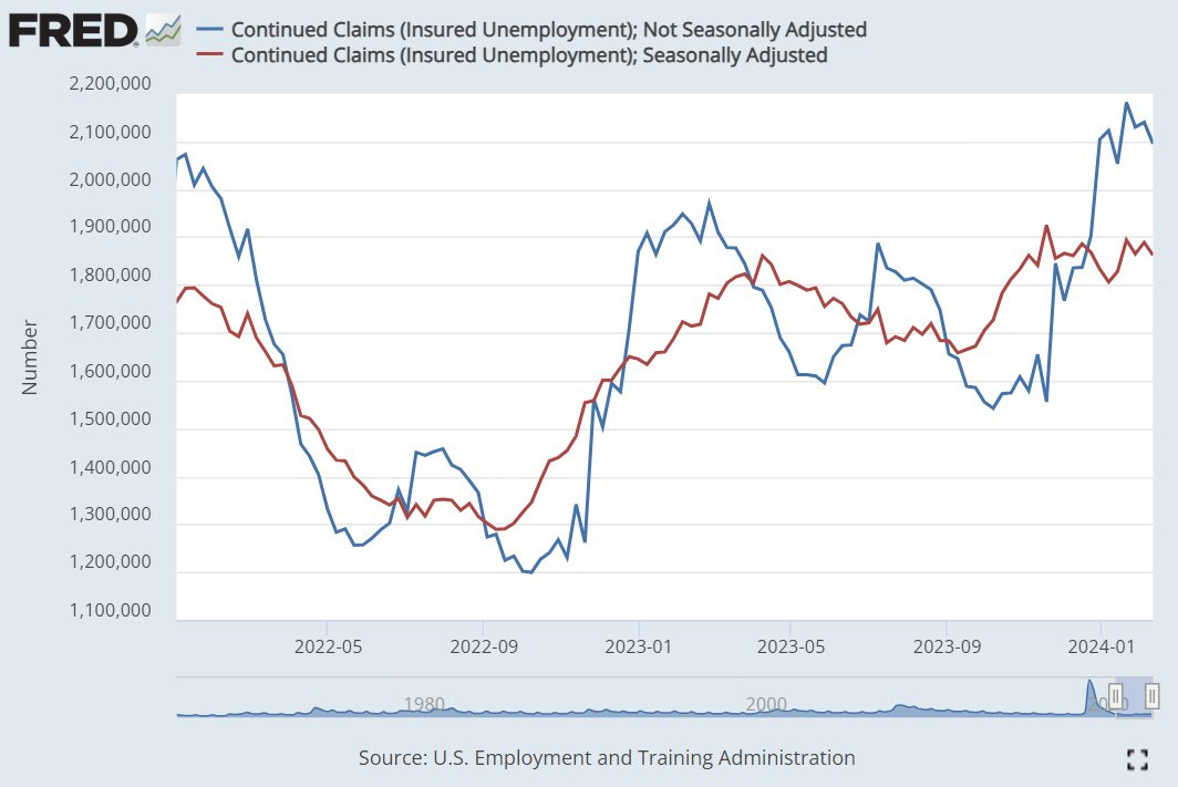 And, as Bob Elliott (of Bridgewater fame) notes, continuing claims sub 2M “are in line with an unemployment rate that is below 4%”, showing “no signs of deterioration.”